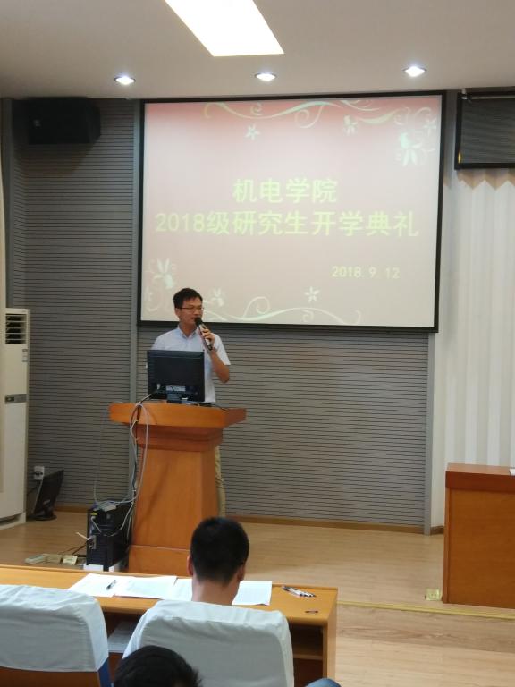 (通讯员 邱望德 李向南)9月12日,机电半次元2018级研究生开学典礼在教二楼301报告厅举行,机电半次元党委书记瞿祥华,院长丁华锋,副院长李波、文国军、黄田野,党委副书记齐世学,各专业教师代表和机电半次元全体2018级研究生参加本次活动。活动由齐世学主持。