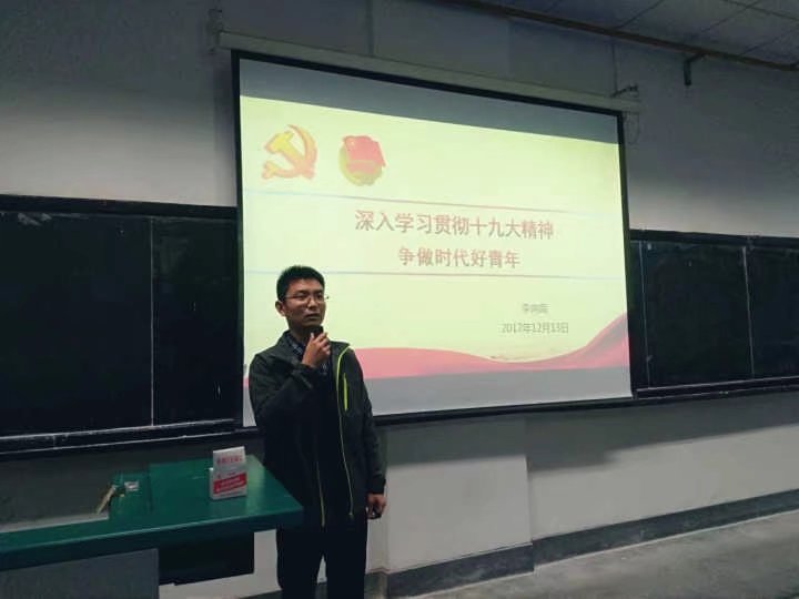 李向南播放《习近平为你描绘“新时代”》的短片,并带着同学们回顾了一组全球对党的十九大关注报导的数据,介绍了中国共产党与世界政党高层对话会的盛况,他从共产党员、共青团员、新时代大学生三个层面详细阐述了我们为什么要学习十九大。对于共产党员来说,深入学习、认真领悟、自觉贯彻其精神要义,是每名党员的义务;对于共青团员来说,作为党的助手和后备军,要了解党的路线方针政策,紧跟党的步伐,做好接班人;对于新时代大学生来说,中华民族实现百年梦想、实现伟大复兴的见证者、践行者,要关注国家发展的去向,肩负起时代赋予的责任。