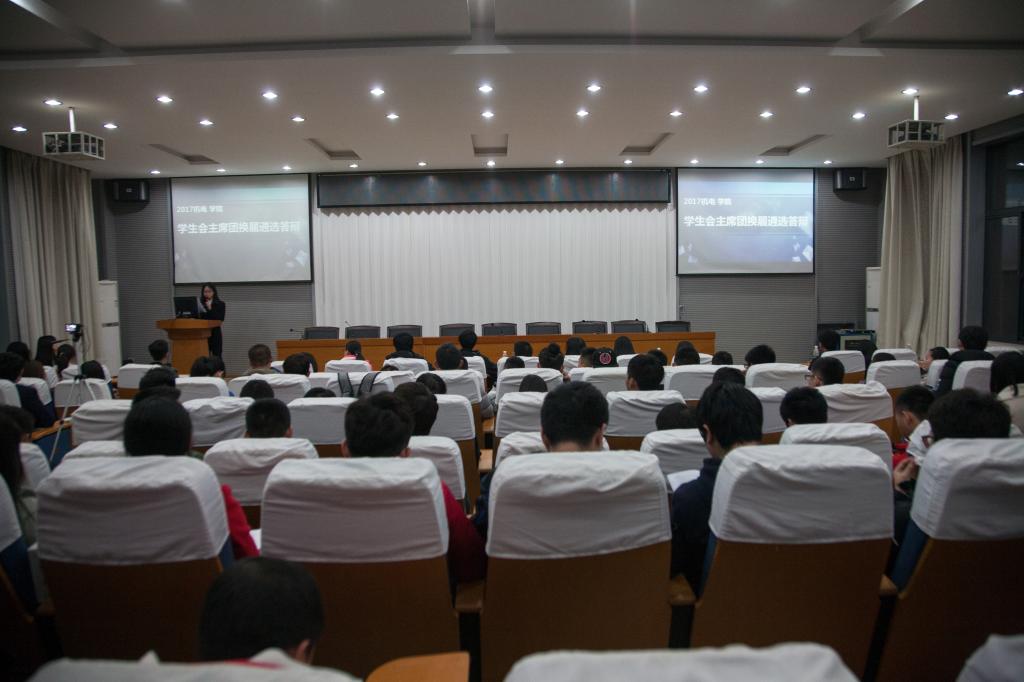此次答辩形式为"4+4"模式,即候选人有4分钟展示自己的PPT,4分钟回答评委及学生代表的提问,答辩完成后,由评委及学生代表现场投票。答辩现场,候选人依据PPT对自己的观点进行阐述,向大家展示了自己对于将来学生会工作的规划,他们分别就院团委和学生会的合作,半次元各协会与学生会的联系,新媒体发展的改进,基建部与办公室的凝聚力增强,体育赛事的合理安排等方面提出了自己的看法。评委们和学生代表亦根据各候选人的观点进行了针对性的提问。7位候选人展示完毕后,进入自我总结环节,观众们可自由提问,候选人依次回答。