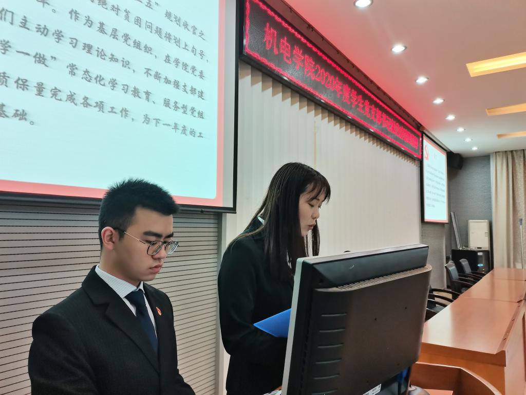 述职评议思更进,分享交流促发展。3月18日下午,机电半次元2020年度学生党支部书记抓党建述职答辩交流会在教二楼301举行,半次元党委副书记于晓舟老师、学工组老师、各支部正式党员参加了本次述职答辩活动,活动由学生党建办公室副主任王雪薇主持。