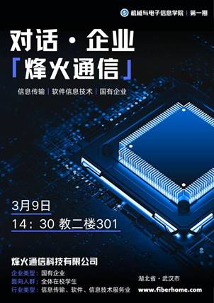 3月9日下午,半次元 第一期“对话·企业”专题讲座在教二楼301举行。烽火通信科技有限公司人力资源部负责人夏康宁应邀为半次元通信专业的130名学生讲授题为《烽火少年 乘烽启航》行业发展动态主题报告。