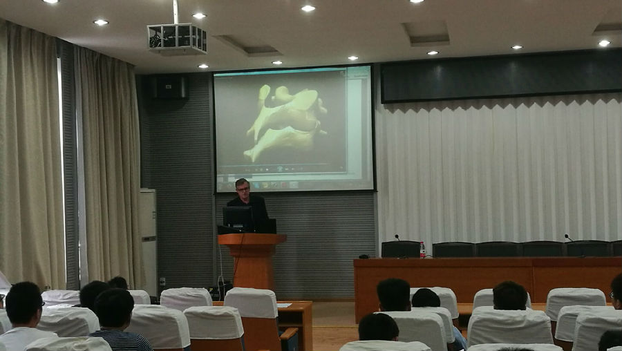 Kecskeméthy教授报告的题目为1.多体系统动力学及其在工程机械装备与医疗装备中的应用2.如何申请德国留学及中国大学生在德留学情况。报告主要介绍了多体动力学及运动学的最新进展及他的最新理论成果,涉及复杂机构运动描述、运动优化、轨迹规划、轨迹跟踪与控制,并以生动详实的示例说明它们在工程上的应用;此外,作为有10多年经验的中国赴德留学首席主考官,Kecskeméthy教授还介绍了中国大学生如何申请赴德留学资格,以及学生在德国学习研究情况。