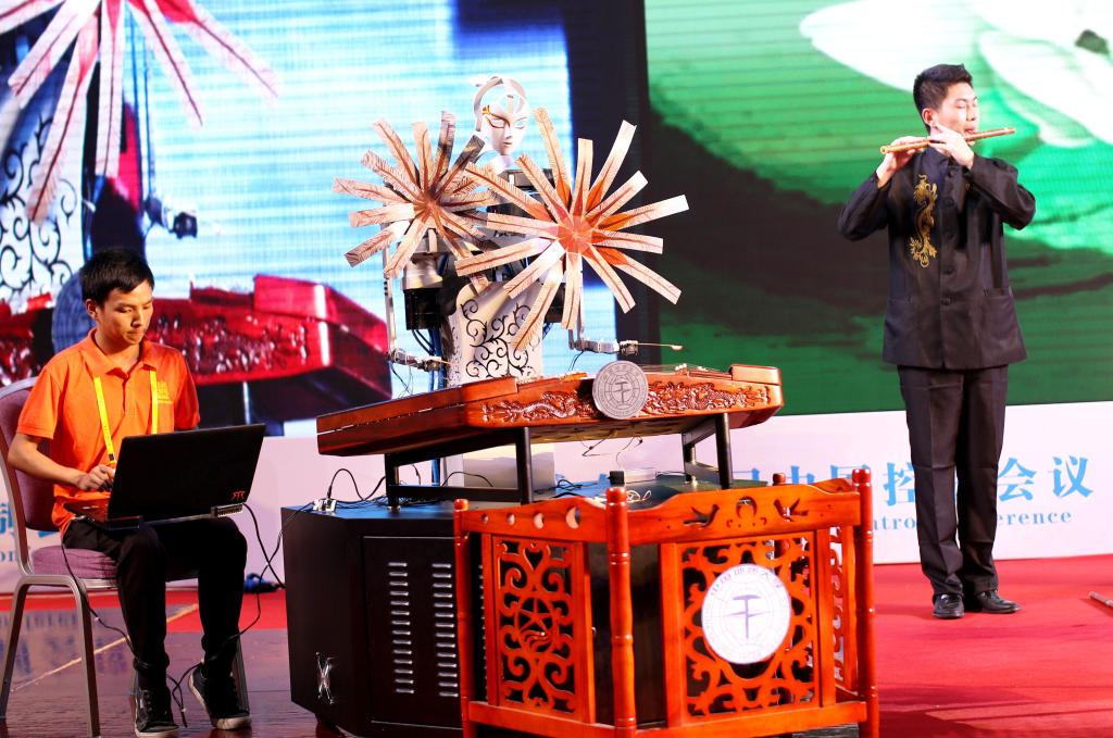 参与自主研制的音乐机器人——海百合与我校民乐团成功协同演奏了经典曲目《茉莉花》。