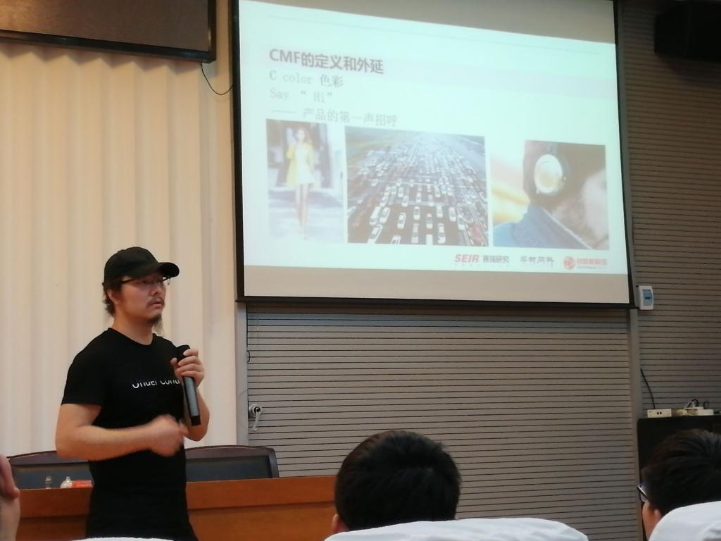 陈晓鹂老师主持宣讲会并致辞。她说,CMF是一个集合了色彩、材料、工程、美学的多学科知识集群,也是决定ID能否落地的重要因素,因为具有一定的审美要求,故从业人员来自于工业设计专业的较多,但是仍相当依赖于对工艺、材料和工程知识的了解。身为一名工业设计师,一定要不断积累CMF知识并学会运用于设计方案中。