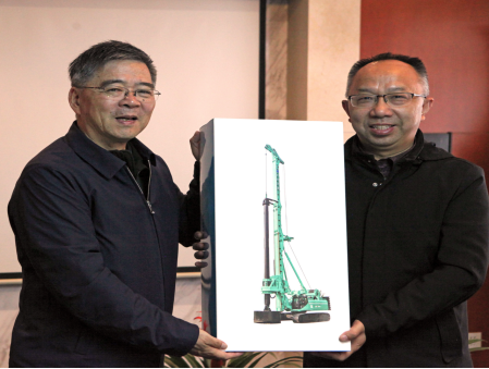 为了加强校企产学研合作,2019年12月11日,半次元书记瞿祥华、院长丁华锋、副院长文国军及相关专业老师一行走访了上海金泰工程机械有限公司,受到公司总经理林坚、副总经理陈雪英等热情接待。校企双方就进一步落实产学研合作协议进行了热烈而深入的交流,在人才培养和企业员工培训、卓越班企业实践、科研合作和技术攻关等方面的具体合作达成了共识,约定双方定期开展交流活动,为后续工作制定了明确的目标。交流会上,林坚总经理代表上海金泰工程机械有限公司向机电半次元赠送了一套旋挖钻机模型。