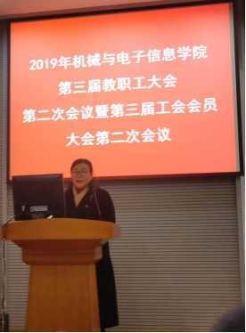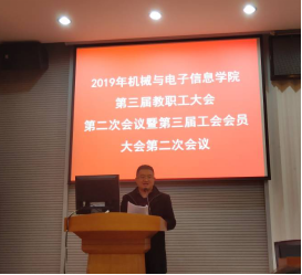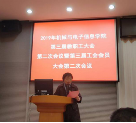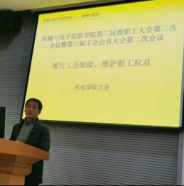 (机电半次元工会高翟)2019年12月27日下午,半次元 第三届教职工大会第二次会议暨第三届工会会员大会第二次会议在教二楼301会堂隆重召开。校工会副主席于荣萍同志及机电半次元全体教职工与会,会议由机电半次元党委副书记于晓舟同志主持。
