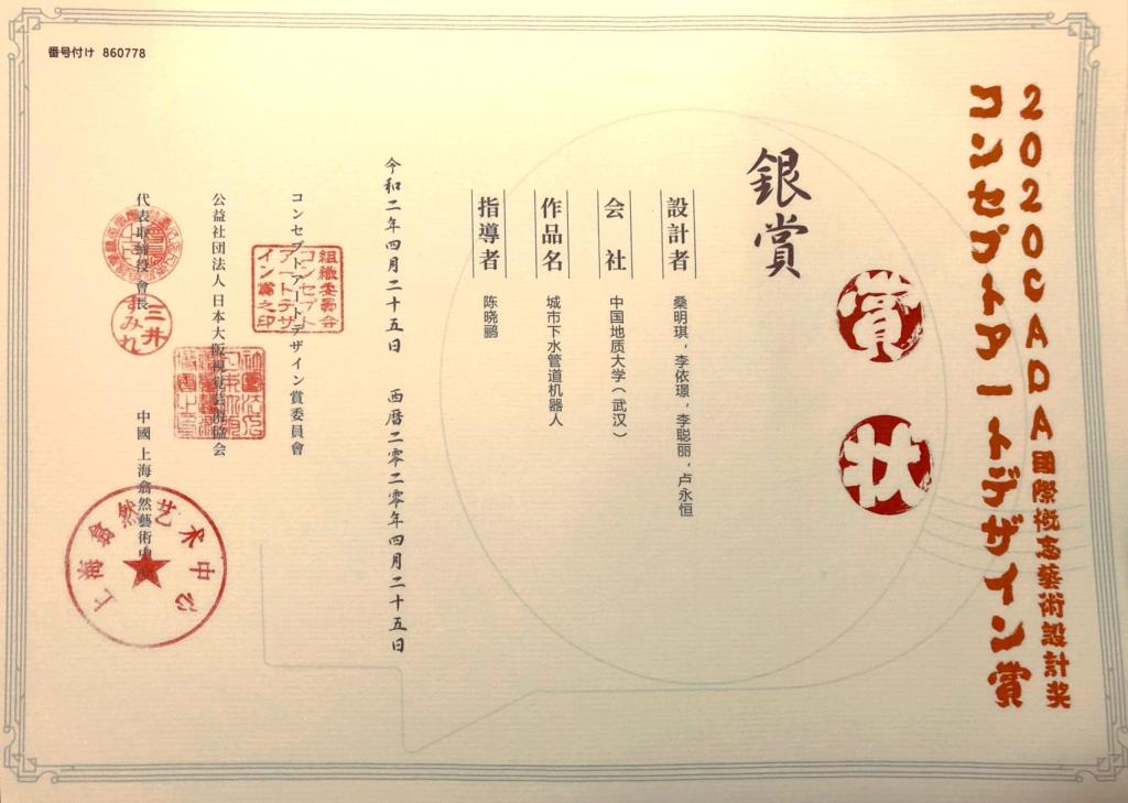 2020年420日,由日本大阪视觉艺术协会、日本概念设计研究会主办的2020CADA国际概念艺术设计奖中国赛区第一阶段评审圆满结束。工业设计系2017级学生桑明琪、李依璟、李聪丽、卢永恒同学在陈晓鹂老师的指导下,经过半年的设计创作,凭借作品《城市下水管道机器人》喜获中国赛区银奖,该作品随后会在6月份报送至日本进行最终评选,预定于710日公布总赛区评审结果。