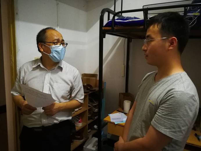 瞿祥华带队走访慰问55栋国防生宿舍,他仔详细询问同学们返校感受,详细了解各位同学毕业去向,希望各位国防生在未来的军旅生涯中发挥专业优势,以专业技能报效祖国。于晓舟带队前往东区2栋研究生宿舍,了解毕业生返校情况,询问毕业生实际困难,发出欢迎同学们今后随时回校回院的邀请。李波带队前往62栋本科生宿舍,叮嘱各位同学按照学校疫情防控要求做好个人疫情防护。文国军带队走访北区10栋、14栋本科生宿舍,了解各位毕业生困难诉求,希望各位毕业生发扬校训精神,克服眼前困难。罗杰带队走访新峰公寓研究生宿舍,查看宿舍环境卫生,期望各位毕业生以良好的精神状态迎接未来的挑战。走访过程中,各毕业研究生导师、毕业本科年级班主任详细询问本课题组、本班各位同学思想状况,希望大家珍惜返校的短暂时间,为自己的大学青春芳华画上圆满句号。