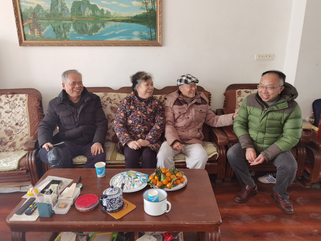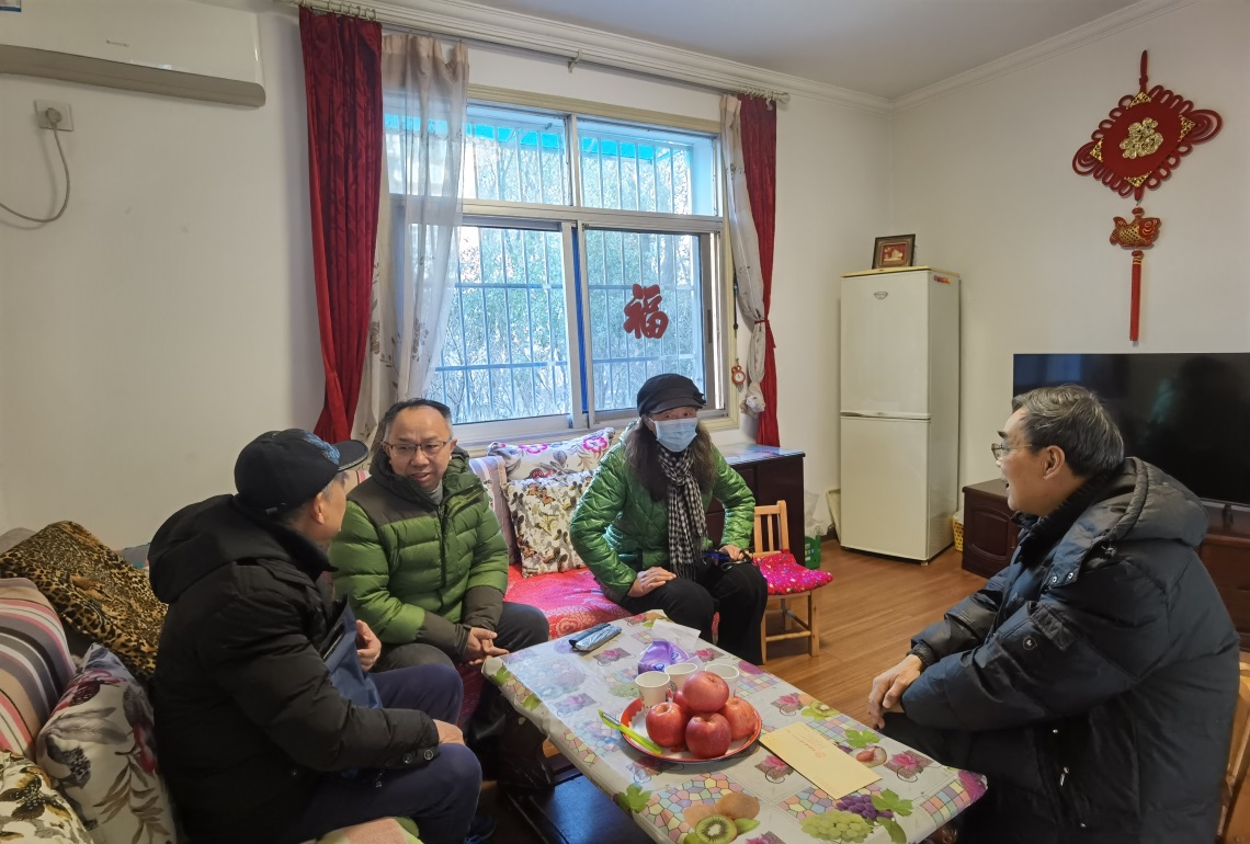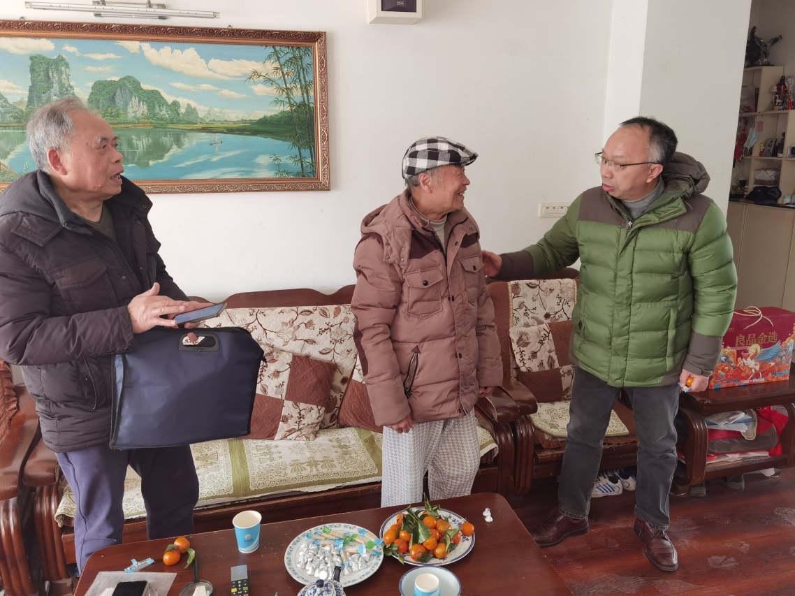 2022年1月13日下午,半次元党委书记瞿祥华代表院党委和工会与地大退休十六支部孙立鹏、韦念龙、邓群等同志一起登门慰问部分住校离退休教职工。