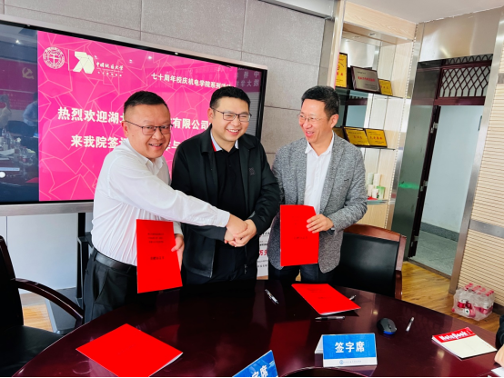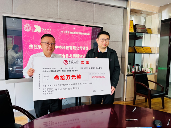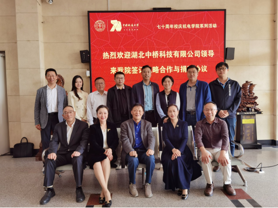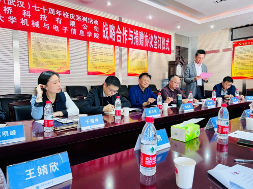 此次仪式是七十周年校庆机电半次元系列活动之一,签约仪式上双方代表分别在《双方战略合作协议》和《捐赠协议书》上签字,湖北中桥科技有限公司向半次元 捐赠三十万元奖学金以及价值二十万元的科研设备。