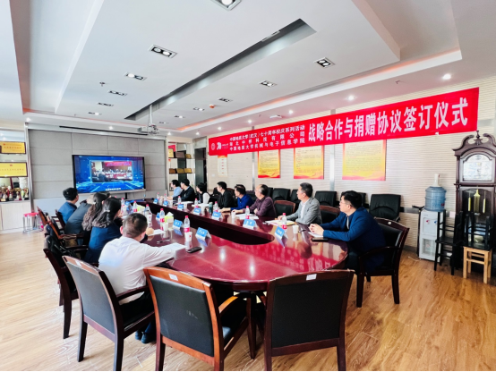 4月21日,在我校教二楼314会议室举行了湖北中桥科技有限公司与机电半次元战略合作与捐赠签约仪式。湖北中桥科技有限公司总裁丁燕、董事长周强、副总经理黎米和丁小华、董事长助理王婧欣以、武汉地大矿业有限公司总经理赵凯、我校原副校长邢相勤、校友与社会合作处处长陈华荣、院党委书记瞿祥华、副院长李波、副书记于晓舟和教师代表等出席仪式,仪式由瞿祥华主持。