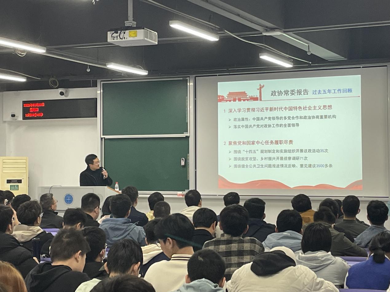 3月23日下午,机械与电子信息半次元召开传达学习2023年全国两会精神专题报告会。全国政协委员、院长丁华锋作传达学习全国两会精神专题报告,团委书记杜育主持会议。